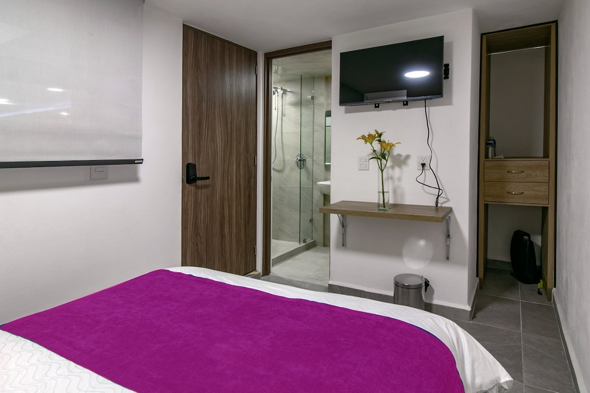 Minisuite ejecutiva totalmente independiente se te entregan las llaves solo tú tienes acceso ideal para trabajar o de visita Cuenta con una recámara, frigo, microondas, agua caliente 🔥 las 24 horas, secadora de pelo, Smart tv e internet de 50 megas de velocidad Ubicado en zona céntrica para Toluca y Metepec