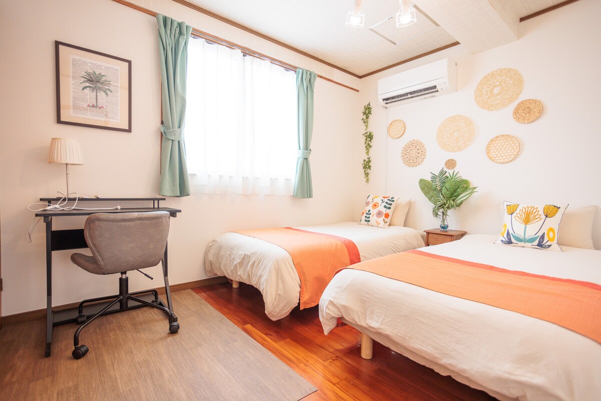 Նահայի միջազգային օդանավակայանից մոտ 30 րոպե հեռավորության վրա ։ Մեկ հարկանի տուն՝ հանգիստ բնակելի թաղամասում, որտեղից տեսարան է բացվում դեպի Օկու-նո-շիմա կղզի։Խնդրում ենք հանգստանալ ընդարձակ տեռասում, որը նայում է դեպի ծով։Ջակուզին, որում մտնում ես՝ նայելով աստղազարդ երկնքին, նույնպես լավագույնն է։ Կարող եք նաև բույրային մերսում ստանալ տեռասում, ուստի խնդրում եմ թեթևացնել ձեր ամենօրյա հոգնածությունը։ Կարող եք նաև խորոված անել պարտեզում։[Ժամը 21։00-ը։Կարելի է վարձով վերցնել մանղալի սարքավորումներ (սալօջախ, փայտածուխ, ցանց և այլն՝ 1000 յենով) [Պահանջվում է ամրագրում] Եթե հետաքրքրված եք, կարող ենք նաև ձեզ համար վարձակալությամբ տրամադրել երեք գծանի հեռախոս և շատ պարզ դասախոսություն կարդալ ձեզ համար։ Բացի այդ, քանի որ հյուրընկալողի տունը հարևանությամբ է, մենք փորձում ենք տրամադրել մանրակրկիտ սպասարկում։ ☆ Խնդրում ենք նկատի ունենալ, որ կայանատեղիից մինչև հարմարության մուտքը կա 30 աստիճան։ Միայն ☆ մեծահասակների համար նախատեսված ամրագրումների դեպքում խնդրում ենք հյուրերի թիվը սահմանափակել 4-ով։ ☆Եթե հյուրերի թիվը գերազանցի 4-ը, մենք կգանձենք լրացուցիչ վճար, բայց եթե ճանապարհորդում եք երեխաների հետ, նրանց համար վճար չի գանձվում՝ անկախ տարիքից, ուստի խնդրում ենք նրանց չներառել հյուրերի թվում և մեզ այդ մասին տեղեկացնել հաղորդագրությամբ։