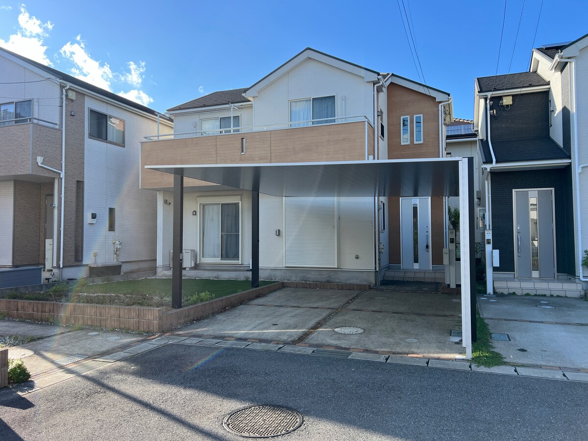 5 minutes from Makuhari Station (North Exit). The entire first floor of a newly built home is reserved for one private group. IN THE LIVING MAKUHARI Opening February 2026 A spacious 64㎡ stay. Check-in 3PM / Check-out 11AM. Free parking for one car. High-speed Wi-Fi. Washer-dryer included. Scandinavian design furniture in a refined Japandi setting. Premium Sealy mattress and a private outdoor soaking tub. Easy access to airports, Makuhari Messe, and Tokyo Disney Resort.
