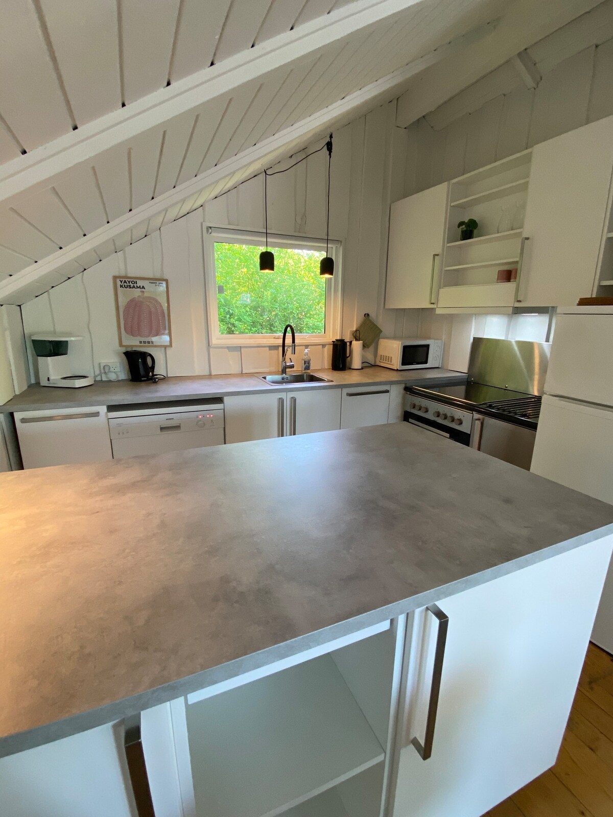Lovely cottage located in a scenic area on a quiet road and with secluded, south-facing terrace. 3 rooms with sleeping space for up to 6 people. Beds 2x 80x200, 1x 140x200 and 1x 160x200 respectively. Cable TV, Chromecast, various streaming services, Sonos, PS4 and Wii, 100mbit free Wi-Fi. Dishwasher, washing machine, 2 refrigerators, freezer, fire place and air-to-air heat pump. Charger for electric cars is also available (contact your host)