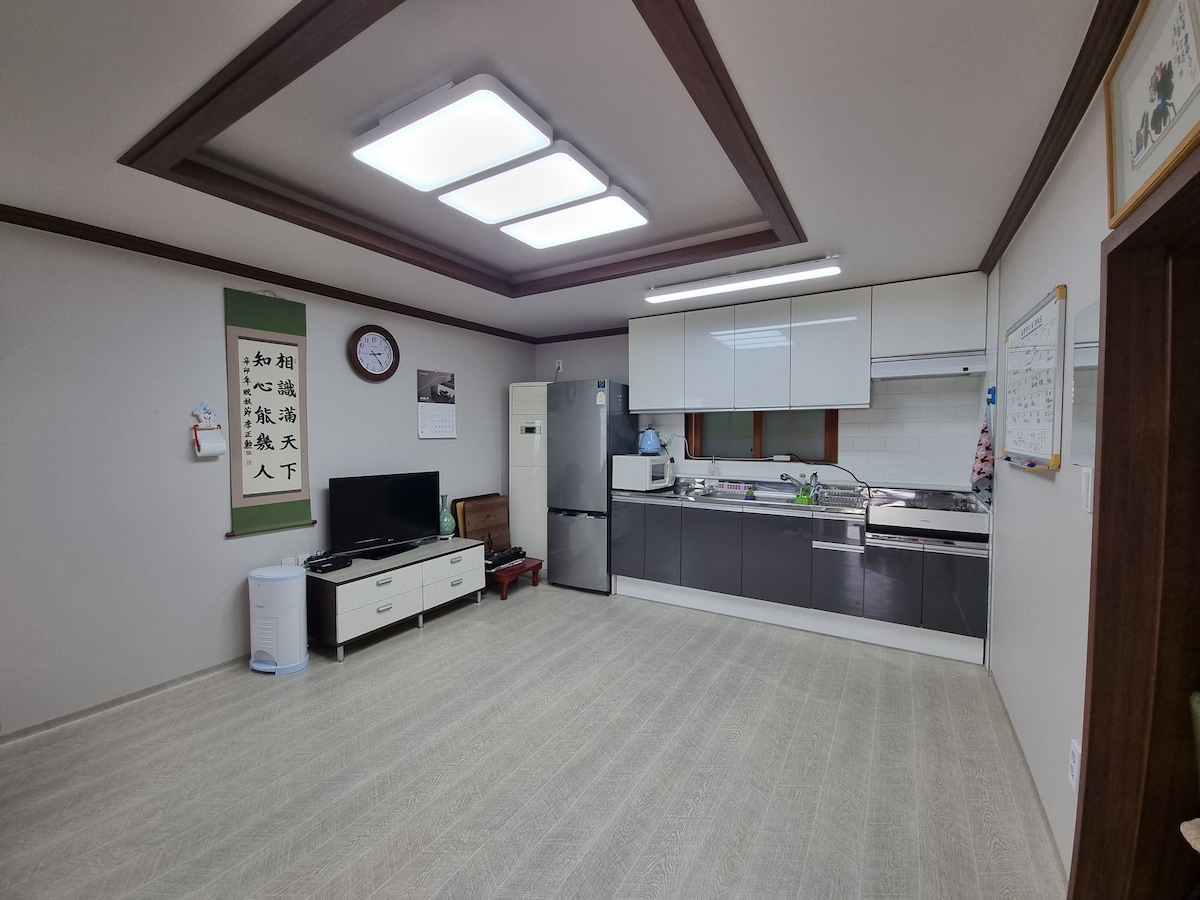 Սա առանձնացված մեկ ընտանիքի տուն է, որը գտնվում է հանգիստ բնակելի տարածքում ։ Ընդարձակ մարգագետնում ապրում են երկու փոքր շուն և լճակ կոի ~: Դուք կարող եք խորոված անել մարգագետնում և զվարճանալ նկուղային սենյակում:(Ունի օդորակիչ):) Առավոտյան տեսարանը գեղեցիկ է: Վայելեք մի բաժակ սուրճ ՝ վայելելով բնությունը հանգիստ և խաղաղ բակային սեղանի շուրջ... Շատ ծաղիկներ շարունակում են ծաղկել: Շենքի հետևի լայն բրնձի դաշտում բրնձի դաշտը, որը փոխվում է կանաչից դեղին, կախված սեզոնից, տեսարան է, որն արժե տեսնել ^^ * Ժամանում - 16:00 (ուղեբեռի պահեստը հասանելի է առավոտյան) * Մեկնում - 12 կեսօր * Խորոված փայտածուխի կրակ - 20,000 - ը (եթե դա վատ չի փչում, նույնիսկ անձրեւի տակ է, հնարավոր է, եւ ձմռանը մենք կպատրաստենք հողմաղաց եւ վառարան): * Ստորգետնյա երգերի սենյակ - Օգտագործման կանոններ - Ուղեվարձ ՝ 10 000 կՎտ անսահմանափակ (Shingok - ի թարմացում ամեն օր )/ Չծխելու տարածք/Առանց ալկոհոլի, խմիչքների կամ սննդի: * Ջրի մաքրիչ, օդորակիչ, հեռուստացույց, էլեկտրական կաթսա, էլեկտրական թեյնիկ, լոբու սուրճի մեքենա, արդուկ, միկրոալիքային վառարան, լվացքի մեքենա, սառնարան, էլեկտրական բրնձի կաթսա, շամպուն, կոնդիցիոներ, մարմնի լվացում և սրբիչներ: