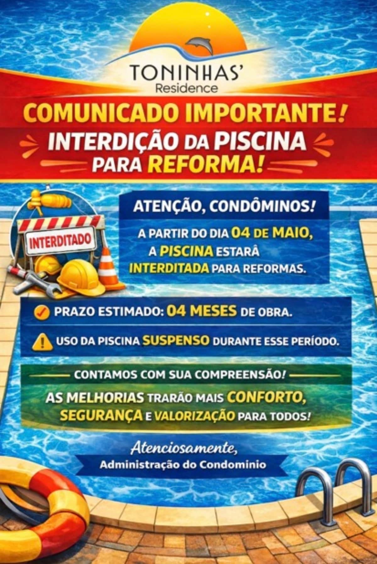 Ավազե ոտքով կոնդոմինիում, որն իդեալական է ընտանիքի համար: Անվտանգ և հանգիստ բն. 01 ննջասենյակով (1 երկտեղանի մահճակալ և 2 բազմոց մահճակալ, ամբողջական խոհանոց ՝ ջրի մաքրիչով, 1 լոգասենյակ և պատշգամբ): Օդորակիչ և հեռուստացույց ննջասենյակում և հյուրասենյակում ։ Պատշգամբ և ննջասենյակ ՝ ծովի տեսարանով ։ Լողավազանով կոնդոմինիում, հեռուստասենյակ, Wi - Fi, փակ կայանատեղի (տարածք 01 մեքենայի համար), 2 դարպաս ՝ շուրջօրյա անվտանգությամբ, հատուկ կարիքներով անձանց համար ։ Ռեստորան ՝ օրավարձի մեջ ներառված չէ սպասարկմամբ: Պարտադիր է կրել անձը հաստատող փաստաթղթի ապարանջան: