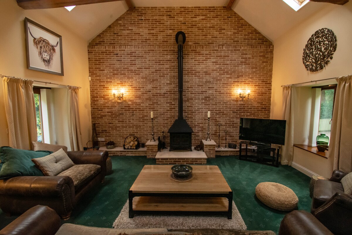 For over a hundred years, this characterful old dairy was where the cows were milked at Hawthorn Farm. Sympathetically and luxuriously converted into a two-bedroom cottage in 2017, it is self-contained and completely detached. Inside, original walls, beams and vaulted ceilings give it a spacious, airy feel. It has its own fully-equipped kitchenette, and a bathroom with a large shower, WC and basin. The spacious 18 x 14 foot carpeted living space has two huge comfy sofas and a table and chairs.