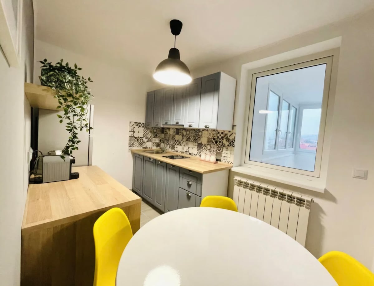 ⛷️La 3 km de Partia de ski și pista de bob. Bucură-te de un sejur relaxant într-un apartament complet renovat, amenajat cu gust și dotat cu tot ce ai nevoie pentru o experiență de neuitat. 🛋️ Dotări moderne • Televizor în fiecare cameră • Internet Wi-Fi de mare viteză • Mașină de spălat rufe • Mobilier nou și spații de depozitare generoase