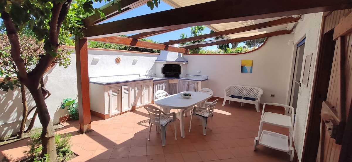 Portion of a new renovated villa, avaiable for up to 4 people. It is located 1 km from the sea: it is composed of a very large bedroom, a bathroom with shower. The kitchen is habitable and fully equipped and has an external entrance. The villa has a large private outdoor area. Parking spaces. Heating for the winter period The area is strategic and quiet. Wi-fi, TV, pets. Linen on request.