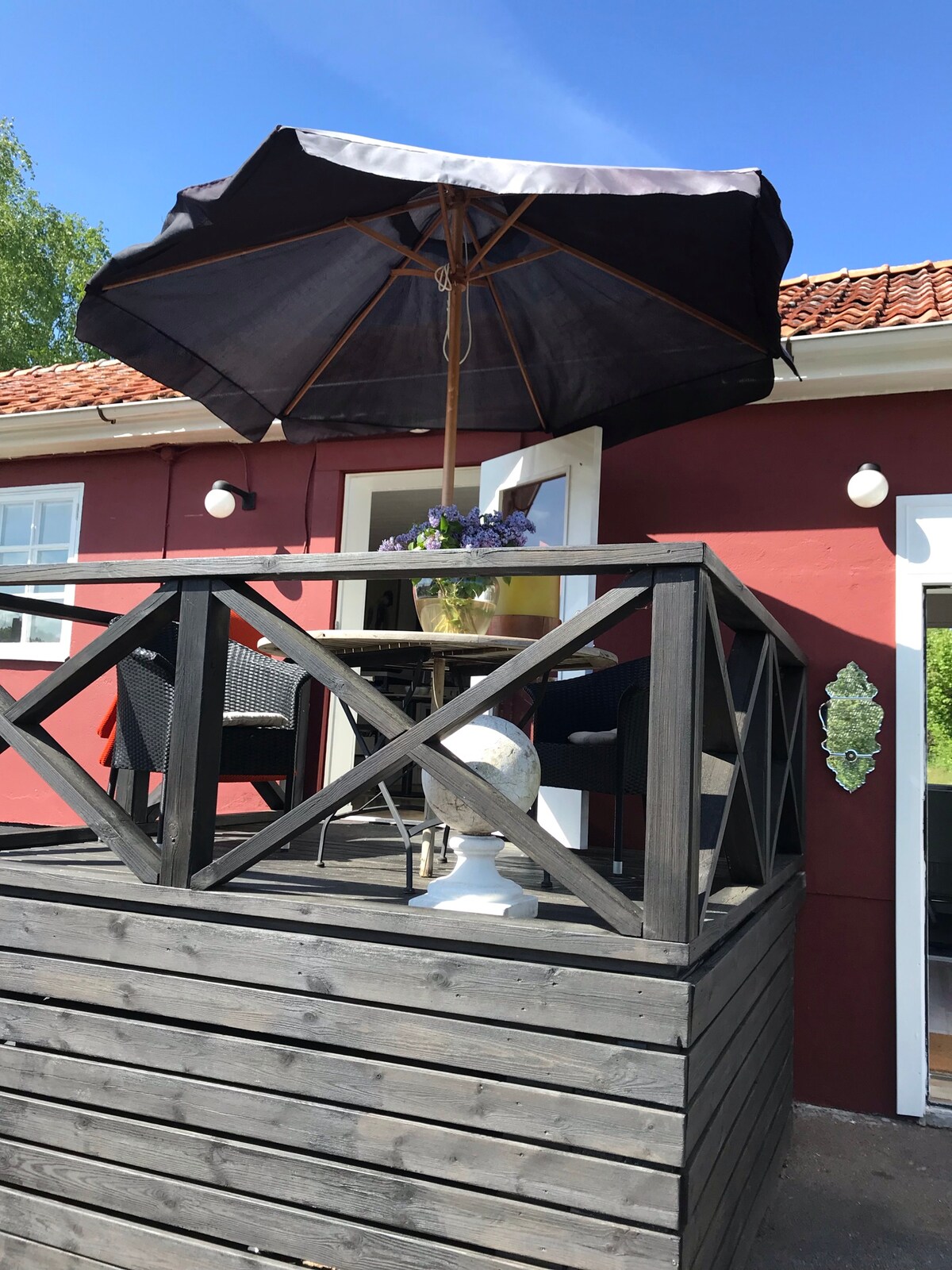 Առանձին նորակառույց բազմաբնակարան շենք կենտրոնական Կալմարում: Մոտավորապես 30 քմ մեծ, ներառյալ քնելու համար նախատեսված լոֆթ ՝ երկու առանձին մահճակալներով և բազմոց - մահճակալով: Բացեք թակելիս ։ Կա լիովին կահավորված խոհանոց ՝ գազօջախով, ջեռոցով, սառնարանով և սառցարանով, ինչպես նաև լոգասենյակ ՝ ցնցուղով և լվացքի մեքենայով ։ Գտնվում է վիլլայի հողամասի ետնամասում ՝ փարթամ այգում, գյուղական վայրում լինելու զգացողությամբ: 800 մ դեպի քաղաքի կենտրոն, 900 մ դեպի Կալմար դղյակ/լոգանքի տարածք և 4 կմ ճանապարհ դեպի Օլանդի կամուրջ: