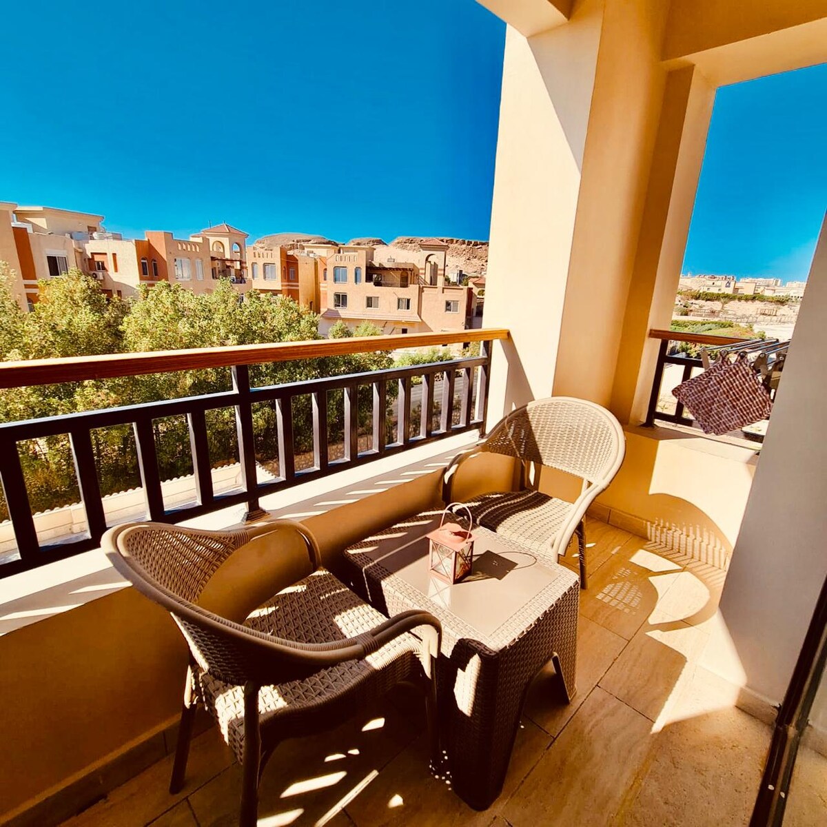 նոր, հիանալի, հանգիստ և լիովին կահավորված մեծ բնակարան , The View Resort - ում, Հուրգադա ։ Հանգիստ և հարմարավետ հանգիստ անցկացնելու ճիշտ վայրը, որտեղ կարող եք արթնանալ գեղեցիկ ծովի և հիանալի լողավազանի տեսարանով և վայելել հիանալի ժամանակ անցկացնել բաղադրության մեջ գտնվող մասնավոր այգիներում: Բնակարանը շատ գեղեցիկ է և հարմար է մեծ ընտանիքների կամ չորս հյուրերի համար Հյուրերը կարող են օգտվել լողավազանից և լողափից ։ Ես իսկապես վստահ եմ, որ դուք երբևէ կանցկացնեք լավագույն արձակուրդը: