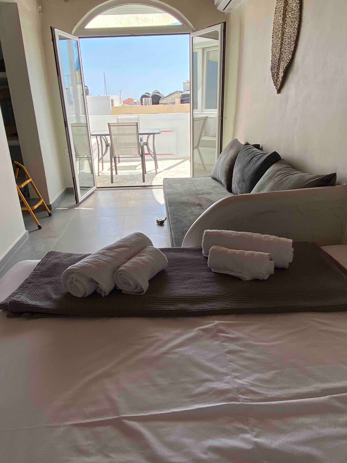 Experience Mykonos Town in a cozy 2-bedroom apartment, perfect for up to 6 guests. Nestled on a quiet, picturesque street, this gem features a spacious terrace with breathtaking sea and city views. Just a one-minute walk to the bus station and supermarket, you'll have all the essentials at your fingertips. Enjoy modern comforts, a sofa bed, and an unbeatable location for an unforgettable stay.