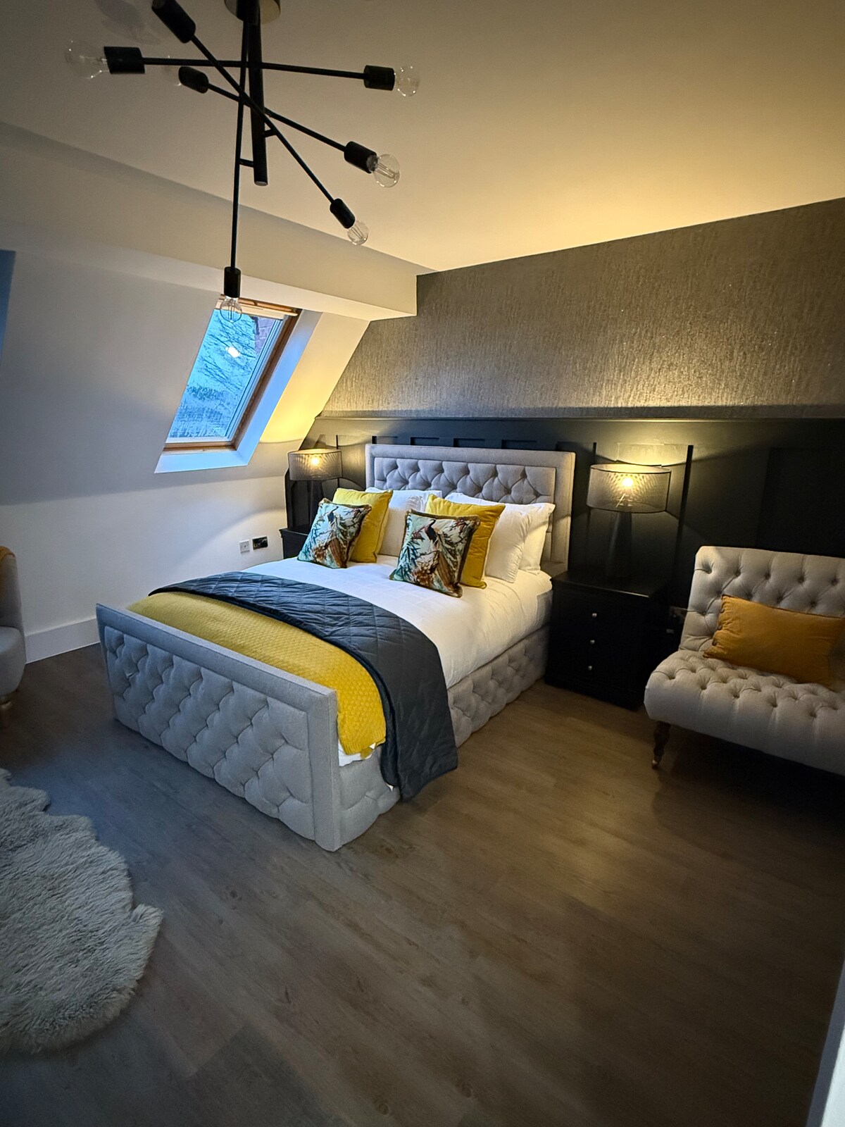 ԲԱՑՈՒԹՅՈՒՆ «ԼՈՒՍԱՎՈՐՈՂ ՏՆԱԿԱՅՔՆԵՐ» Տնային կենդանիների համար հարմար, ռոմանտիկ թաքստոց Մանչեսթերի սրտում ։ Կենտրոնացված ջեռուցում և փայտի այրիչ ։ 1950 - ականների Հավանայից ոգեշնչված արտասովոր ինտերիեր ։ Showpiece - ն ազնվության բար է ՝ գինով, ոգելից խմիչքներով և սիգարներով ։ Խոհանոց, որը հագեցած է թեթև նախաճաշով պատրաստելու համար (սուրճ/թեյ/շիլա/կաթ/OJ )։ Ցնցուղ/լվացարան/զուգարան ։ Երկտեղանի մահճակալ և մեկտեղանի բազմոց ։ Ննջասենյակից բացվում է գրավիչ տախտակամած ՝ քաղաքը վայելելու համար, մինչ մնում է արտաքին աշխարհից ։