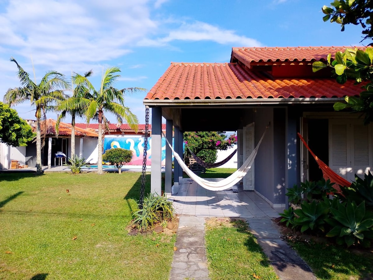 Casa com piscina, jogos e gourmet a 300m praia