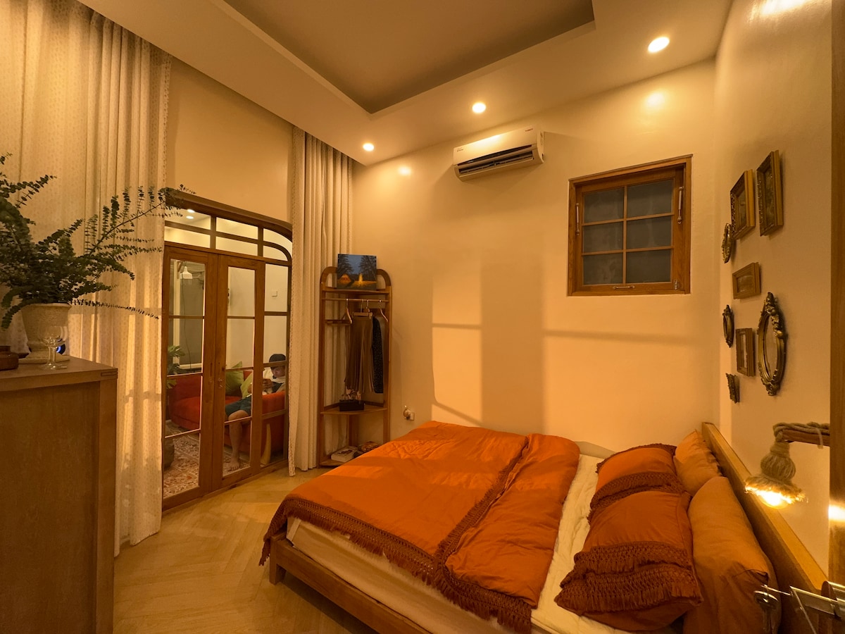Վայելեք Հանոյի Հին թաղամասը ժամանակակից հանգստի վայրից ՝ հայտնի ԳՆԱՑՔԻ ՓՈՂՈՑԻՑ մի քանի քայլ հեռավորության վրա: Այս բնակարանում կա ՍՈՒՊԵՐ ՄԵԾ ՄԱՀՃԱԿԱԼ, ՀԱՐՄԱՐԱՎԵՏ ԲԱԶՄՈՑ և շքեղ լոգասենյակ ՝ ցնցուղով և ՓԱՅՏԵ լոգարանով ։ Պատրաստեք ձեր ԱՌԱՆՁԻՆ ԽՈՀԱՆՈՑՈՒՄ ԵՒ ԼԻՑՔԱԹԱՓՎԵՔ 100 - INCHES ՊՐՈՅԵԿՏՈՐԻ և Wi - Fi - ի միջոցով ։ ՄԵԾ ՁԱՅՆԱՄԵԿՈՒՍԻՉ ՊԱՏՈՒՀԱՆԻՑ բացվում են փողոցային աշխույժ տեսարաններ ՝ համադրելով Հանոյի հմայքը տան հարմարավետության հետ ։ Իդեալական է քաղաքի սրտում յուրահատուկ և հանգստություն փնտրող ճանապարհորդների համար ։
