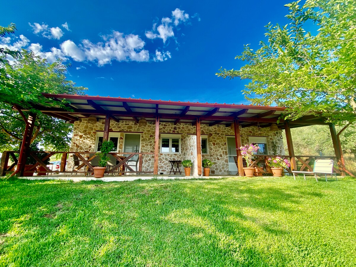 Villa kladi is located in the middle of our olive grove, on the border with the forest. Only for nature lovers "including its guests and rumors". To get to our house be ready for a mini off-road about 1km,(any car can come),between fragrant flowers, wild flowers and olive trees and sometime sheeps as well. The nearest beach can be reached by car in 5 min.The house have a really beautiful view to the sea