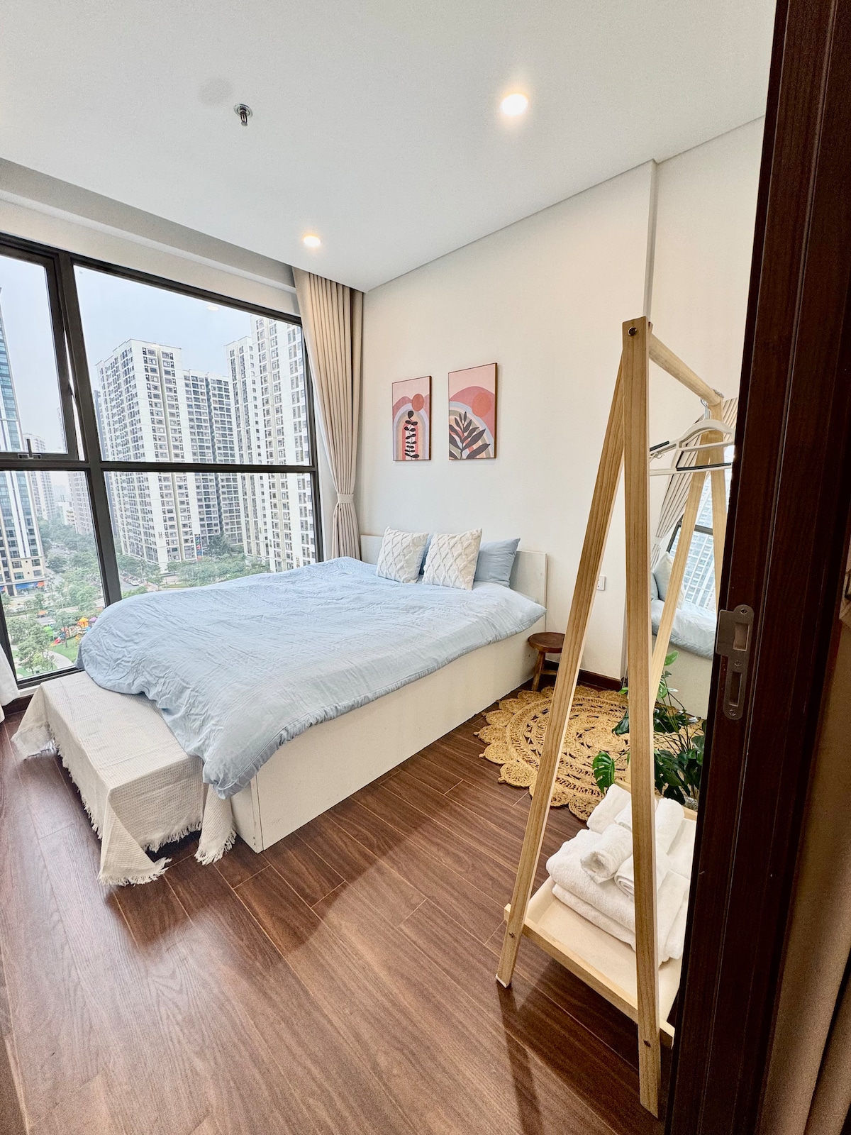Một căn hộ yên bình và ấm cúng nằm ở tầng 32 toà H2 Masterise Waterfront Oceanpark. * Sảnh lễ tân tiếp đón sang trọng, được trang bị thêm khu tiếp khách Business Lobby * với hệ thống vườn thượng uyển, sở hữu khu vui chơi trẻ em và khu tập Gym trong nhà miễn phí ❣️Mất khoảng 25 phút đến Khu phố cổ bằng Taxi hoặc bạn có thể sử dụng dịch vụ Vinbus (9.000đ/vé)