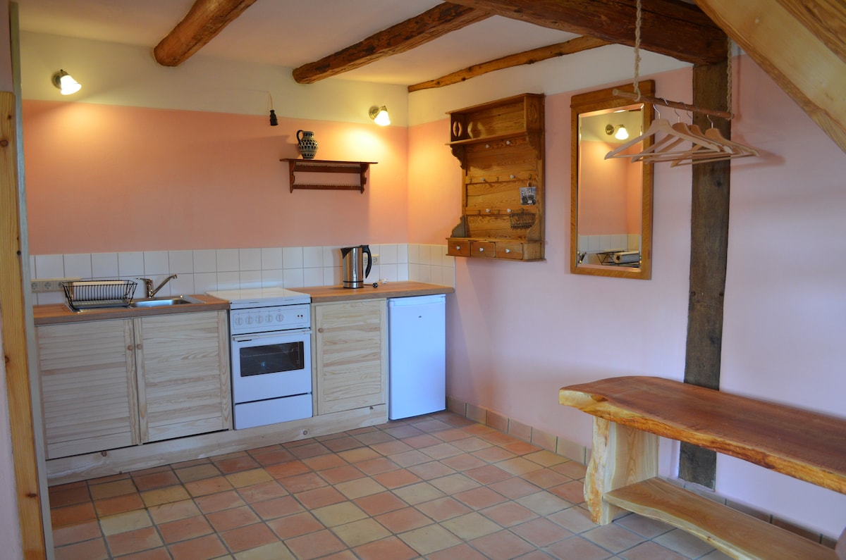 Մեր նշված 300 - ամյա ագարակում մենք առաջարկում ենք ՝ երկու առանձին բնակարան յուրաքանչյուր 4 անձի համար ՝ խոհանոց - հյուրասենյակով, սանհանգույցով և ննջասենյակով ՝ յուրաքանչյուրը երկու հարկով և մոտ 50 քմ մակերեսով: Մենք գտնվում ենք Südeichsfeld - ում, որը փարթամ լեռնոտ ցածր լեռնային լանդշաֆտ է: Բնությունը և շրջակայքը հրավիրում են ձեզ արշավի կամ ցիկլի: Draisine ձիավարություն, այցելելով ամրոցներ, մագլցում անտառ, այցելություն արջերի այգի Worbis կամ էքսկուրսիաներ դեպի մոտակա կիսով չափ պատված քաղաքներ են հայտնի էքսկուրսիոն ուղղություններ: