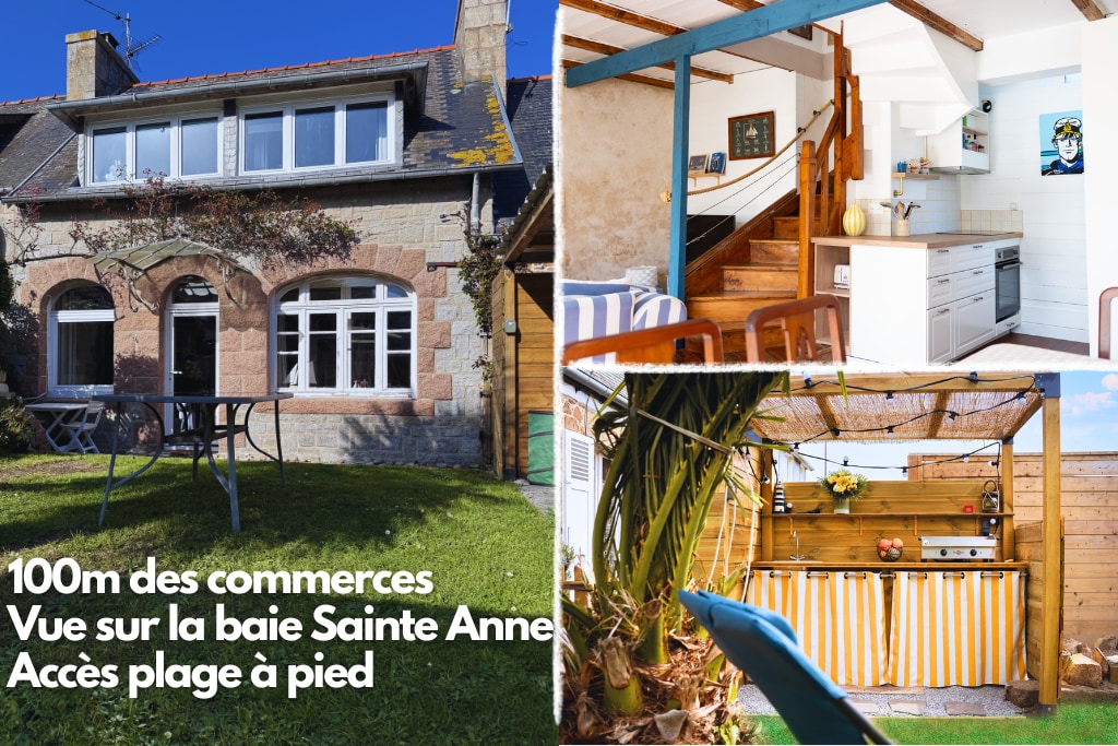 Les pieds dans l'eau, vue sur mer. Meublé de tourisme 2 étoiles Accès direct à la magnifique plage de sable fin de la Grève Blanche Situé près du GR34 Salon avec canapé convertible de qualité en 160 cm matelas 17cm d'épaisseur, très bonne literie Linge de lit et de toilette fournis Tout équipé, avec WIFI gratuit De plain pied avec entrée privative Terrasse extérieure avec salon de jardin donnant sur la plage Cuisine aménagée Coin repas avec 2 chaises hautes et grand mange debout Salle de bain.