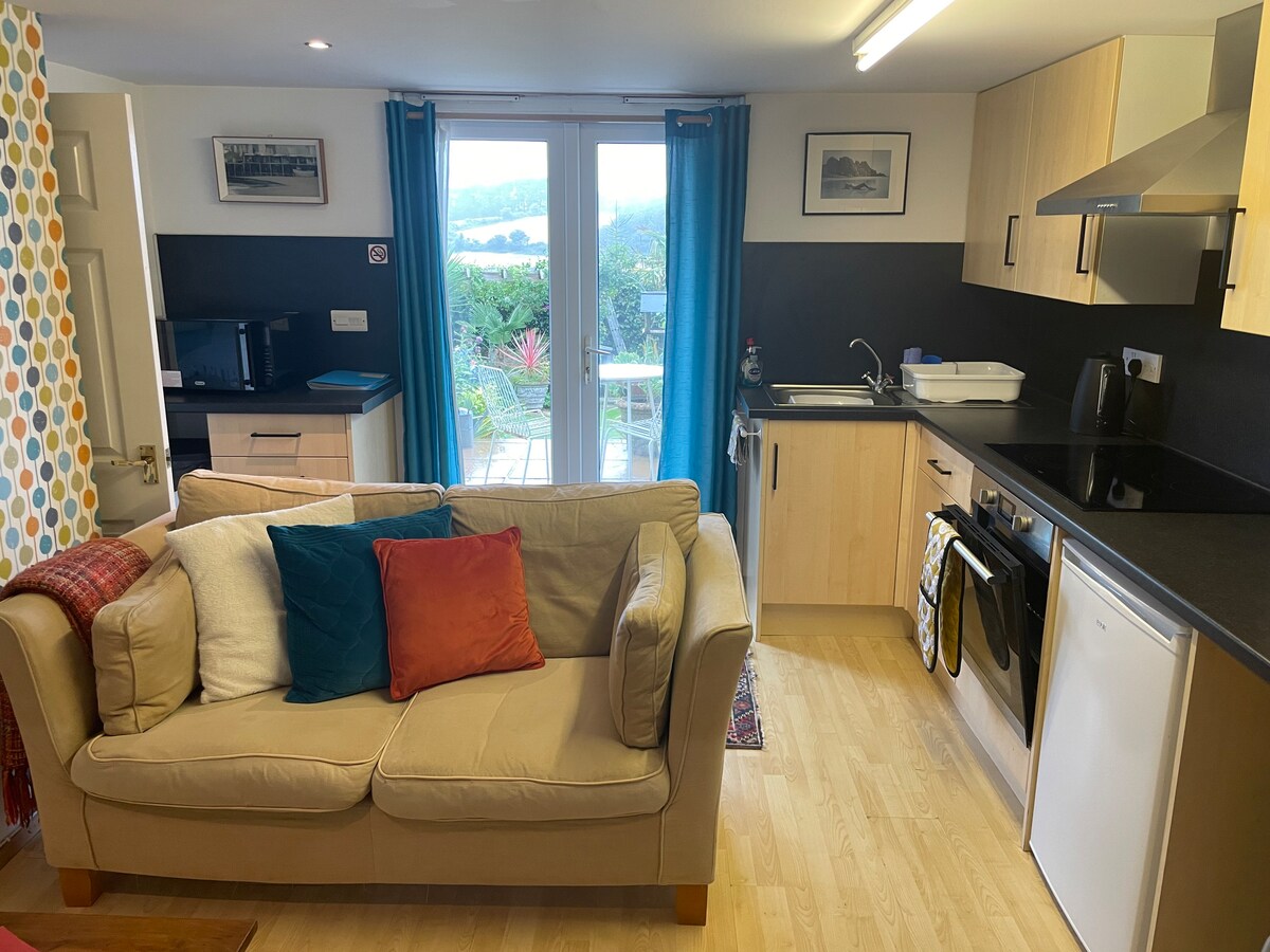 Գեղեցիկ ժամանակակից, թեթև և հարմարավետ սելֆի Հավելված ՝ երկտեղանի մահճակալով, մեծ առանձնաբաժնով և նախաճաշի պարագաներով Մեր ափամերձ ընտանեկան տանը կից, սակայն առանձին մուտքով: Անվճար կայանատեղի անմիջապես դրսում ՝ մասնավոր մերձատար ճանապարհի վրա ։ Նյուլին/Պենզանս լողափը, նավահանգիստը և ափամերձ արահետը 3 -4 րոպե քայլելով բլրից ներքև ՝ արվեստի պատկերասրահներով, խանութներով, ռեստորաններով, սրճարաններով, փաբերով և անկախ կինոթատրոնով: Penzance Town with a Marina, Island Ferry & Train/bus station is a beautiful 25 min walk along Penzance seafront