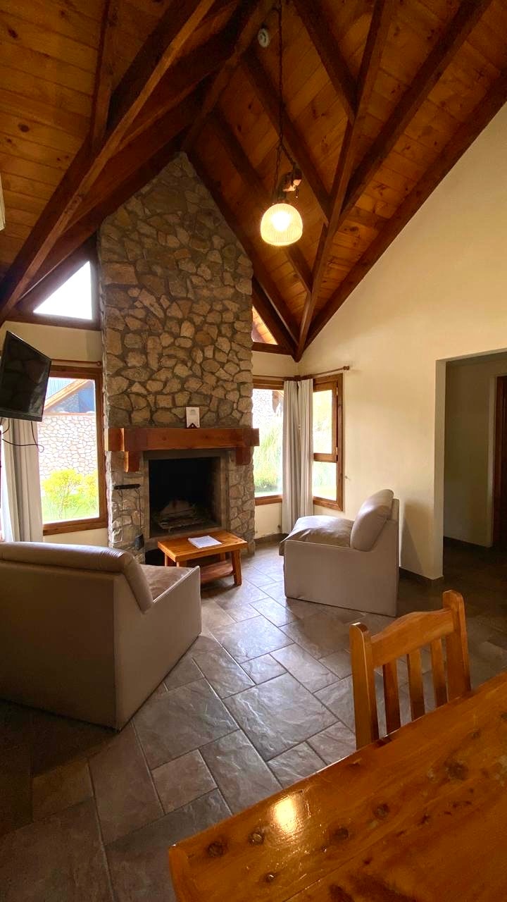 Es una Loft tipo alpino con un entrepiso, el frente es todo vidriado que hace que tengamos todo el día una vista única a la cordillera, al cerro 21 y La Hoya a lo lejos, con el Nahuel Pan de fondo haciéndonos sentir como si estuvieramos adentro de un cuento. Es una propiedad nueva y moderna, de construcción tipo industrial, con madera y detalles en hierro negro, pareciera que es sacada de una pelicula sin dudas. Sentir el calor de los leños construyen una parte mágica de nuestra estadía.