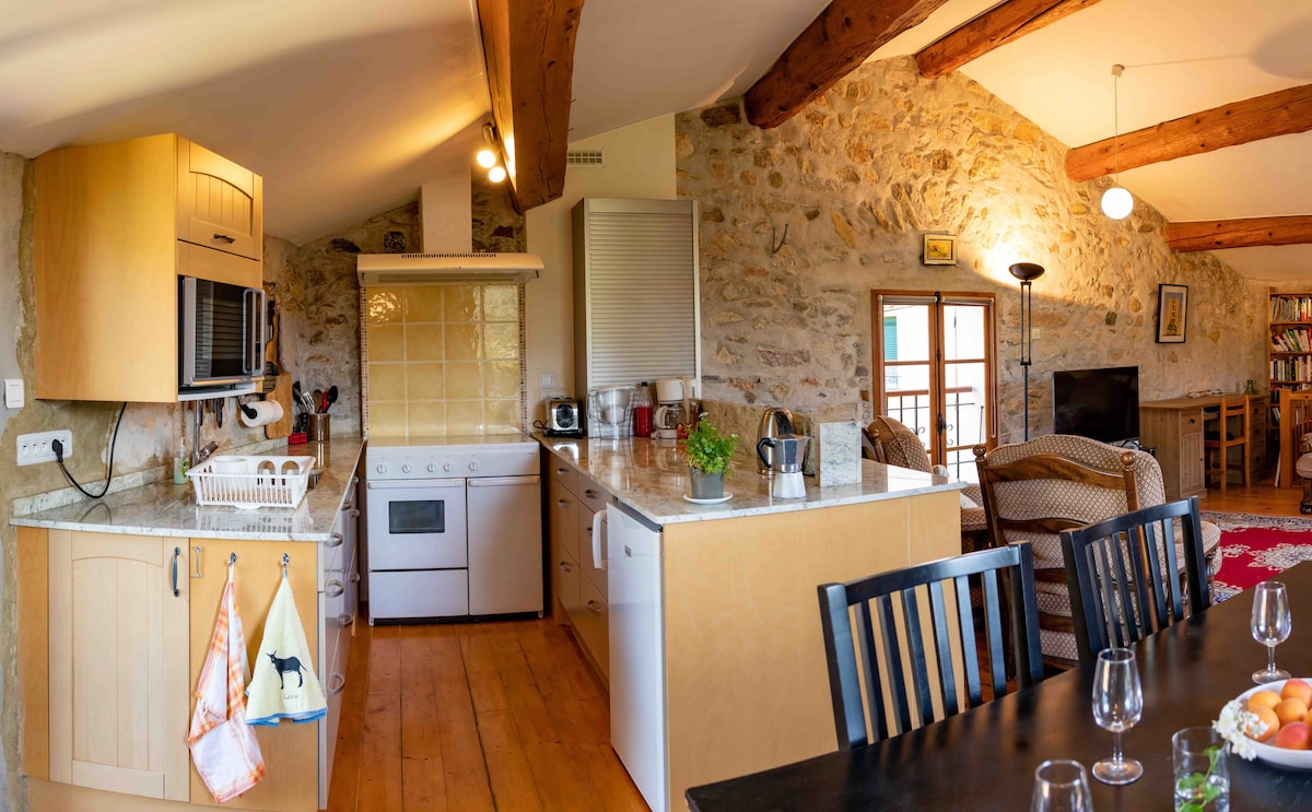 17 - րդ դարի գեղեցիկ վերանորոգված տուն, որը զբաղեցնում է 3 հարկ ՝ ավելի քան 100 մ² մակերեսով ։ Այն գտնվում է 1400 մ բարձրության վրա և ուղղված է դեպի հարավ ՝ ունի մեծ, շատ ծաղկաշատ այգի և հիասքանչ տեսարան դեպի հովիտը, Կանիգուն և Կարանչայի լեռնազանգվածները ։ Իդեալական է անջատման համար ։ Վայրի բնությունն ամենուր է և հեշտ է դիտել ։ Բազմաթիվ արշավային կամ լեռնային հեծանվային արահետներ սկսվում են անմիջապես տնից ։ Մեր գյուղը վայելում է միջերկրածովյան կլիմա և գտնվում է լեռնադահուկային լանջերից 40 րոպե հեռավորության վրա և ծովից մեկ ժամ հեռավորության վրա: