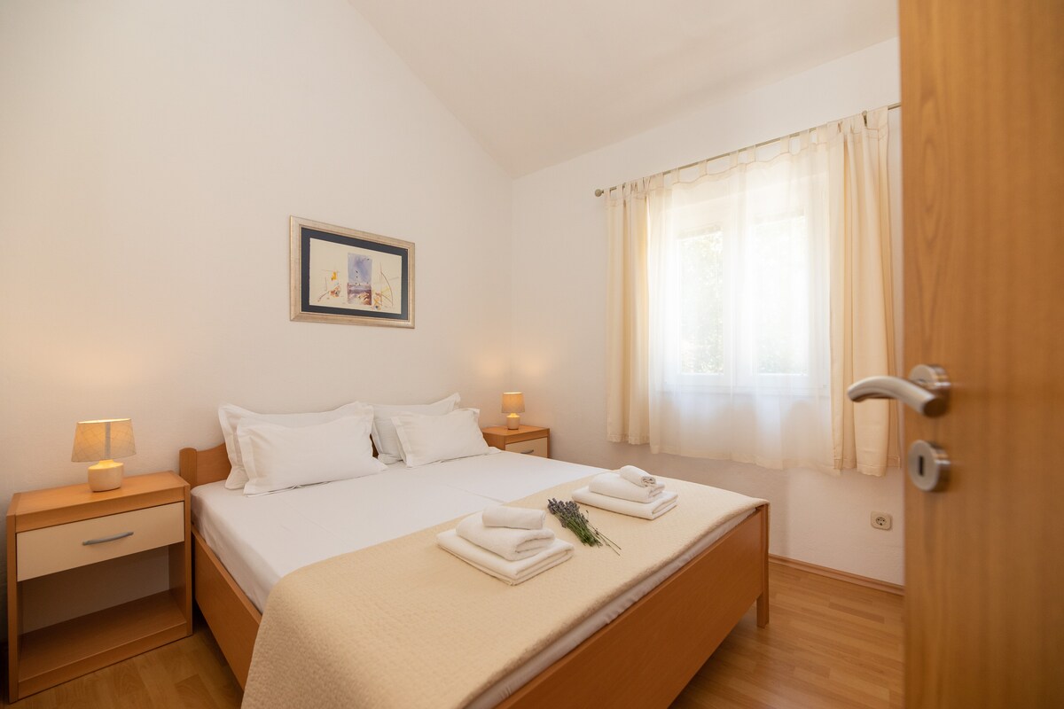 Բարի գալուստ մեր գեղեցիկ 3 աստղանի բնակարաններն անմիջապես ադրիատիկ ծովում: Բազմաբնակարան տունը գտնվում է լողափի հարևանությամբ և ունի դեպի ծով անմիջական ելք ։ Ապահովելով հիանալի համայնապատկեր ՝ կարող եք դիտել ամբողջ լողափը ։ Ծովը պարզ է և թարմացնող, և մենք լողափում մեր հյուրերին առաջարկում ենք արևապաշտպան մահճակալներ և արևայրուքներ ։ Այն իդեալական վայր է հանգստի, լողալու և հանգիստը վայելելու համար ։ Բնակարանն ունի 38 քմ մեծություն, հարմար է 1 երեխա ունեցող 2 անձի համար ։