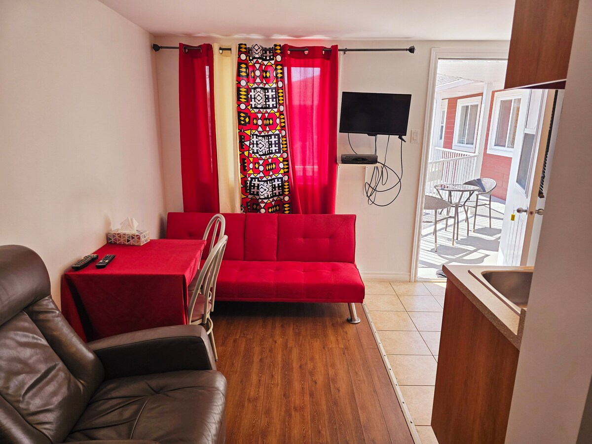 Ահա գեղեցիկ այլընտրանք հյուրանոցի և տան միջև ։ Փոքր բնակարանն աչքի է ընկնում տարածքի օպտիմալացված կառավարմամբ, որը տեղ է թողնում հարմարավետության և մթնոլորտի համար: 1 - Վարձակալության պայմանագիր ստորագրելու կարիք չկա 2 - Դուք ունեք բավականին արագ ՝ ամեն ինչի կենտրոնում գտնվող վայրում 3 - Դուք ունեք կացարանների հարմարավետություն Վայելեք ձեր այցը և անհամբեր սպասում ենք ձեզ նորից տեսնելուն ։