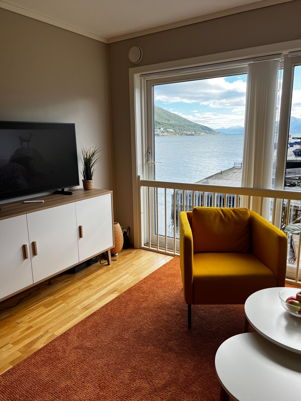 Step into the stylish and bright 1BR 1BA oasis in the heart of the picturesque and vibrant city of Tromsø. It promises a relaxing retreat just a step away from the city center, seafront, exciting attractions, and landmarks. Explore the city from our prime location before returning to the lovely apartment, whose breathtaking sea and mountain views will leave you in awe. ✔ Comfortable Bedroom ✔ Open Design Living + Sofa Bed ✔ Full Kitchen ✔ Workspace ✔ Smart TV ✔ Wi-Fi ✔ Parking See more below!