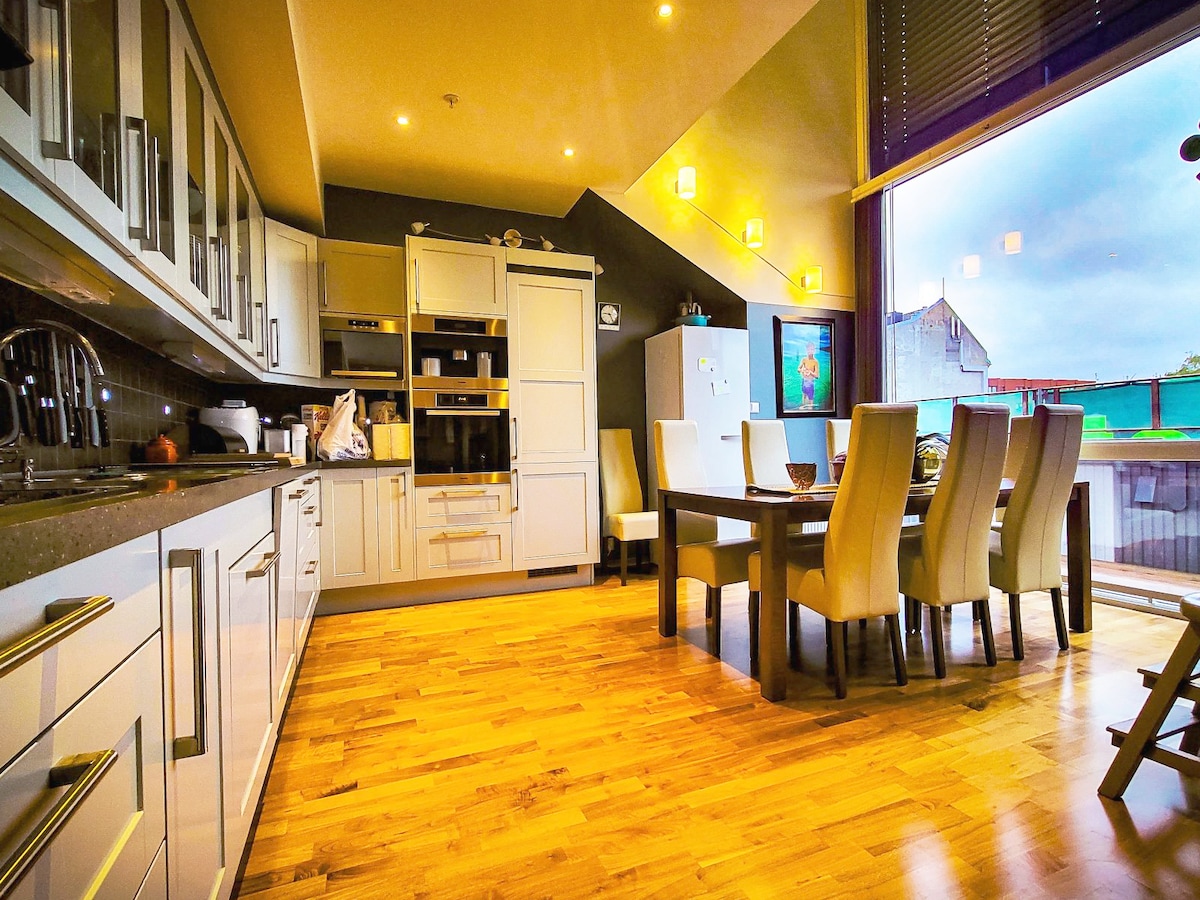 Nyt fantastisk panoramautsikt fra en nyoppusset og romslig leilighet over to etasjer, 2.etasje og loft. Beliggende landlig og fredelig på Ranheim, med to solrike terrasser. Kort vei til marka og kun 10 min til Trondheim sentrum. Leiligheten har tre soverom og en sovesofa, plass til opptil 8 personer. Perfekt for familier eller vennegrupper som ønsker komfort, ro og nærhet til både natur og by. Gratis parkering, elbil-lader, WiFi, fullt utstyrt kjøkken, to stuer, sengetøy og håndduker inkludert.