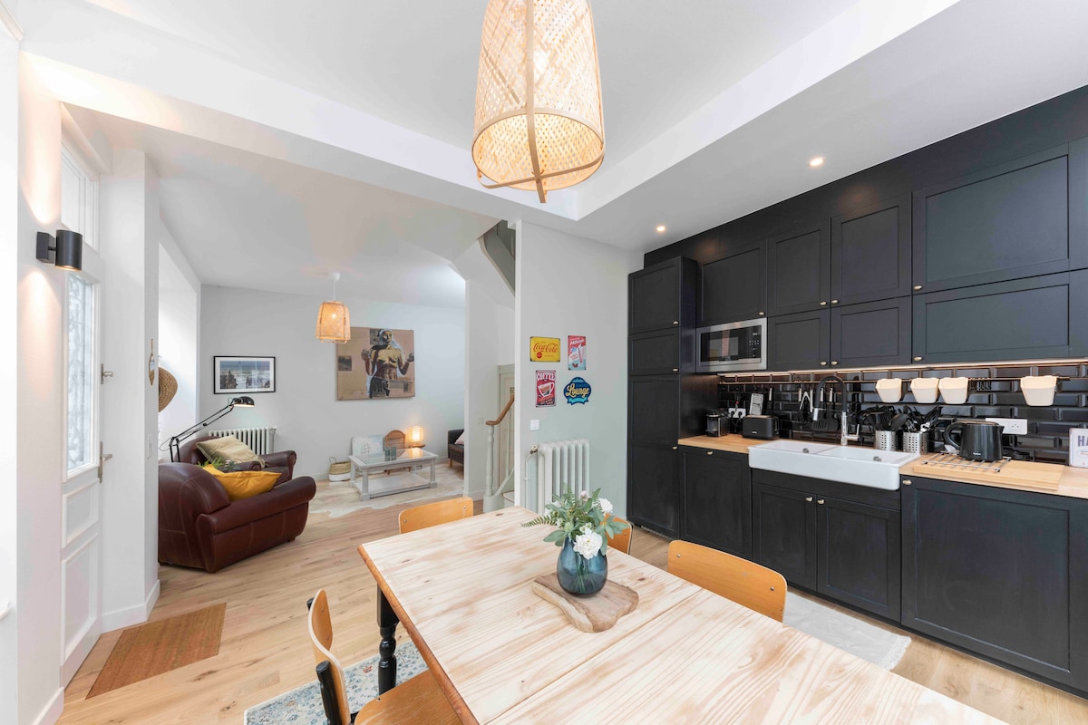 Agarrus Rentals invites you to spend a few days at La Boucherie Trouville, a fully renovated 200 m² character house located in the heart of Trouville-sur-Mer, 300 m from the train station, casino, and beach. Ideal for up to 13 people + babies, it spans 5 levels and combines architectural charm with modern comfort. You'll find 4 double bedrooms plus a 5-person space on the top floor (1 double bed and 3 single beds).