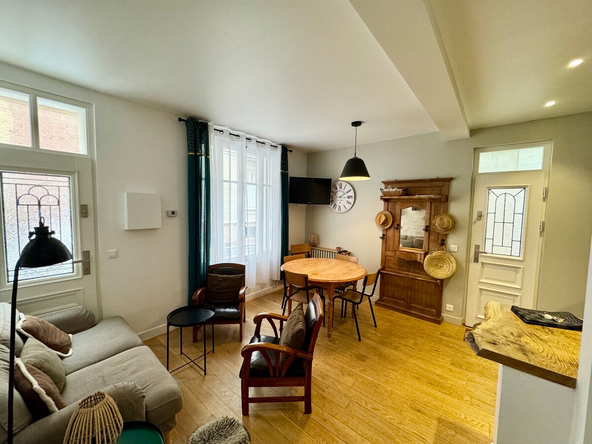Cette adorable maison située en plein cœur de Trouville, à deux pas de la plage, des commerces et du Casino, est l'endroit idéal pour se ressourcer en bord de mer. Jolie pièce de vie avec salon cosy, coin repas avec cuisine complètement équipée. Une chambre double se trouve au RDC, avec sa salle de bain et WC séparés. A l'étage, une grande chambre avec 2 lits simples (possibilité de mettre en grand lit), et une salle de bain avec baignoire attenante. Une jolie terrasse au soleil complète le bien