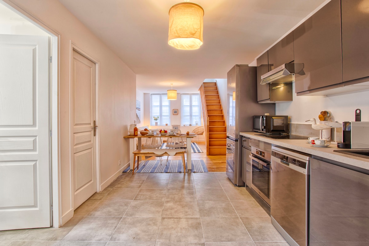 Honfleur 15 mn. Բնակարան 3 սենյակ, 68 մ², 1 - ին հարկում, պատշգամբով: Quartier Bon Secours, rue des Bains. Ժամանակակից դեկորը ՝ 19 - րդ դարի վերջինին բնորոշ հմայիչ շենքում, որը գտել է ճարտարապետություն ։ Իդեալական տեղակայված է հանգիստ փողոցում և մոտ է ամեն ինչին. խանութները, լողափը և երկաթուղային կայարանը գտնվում են քայլելու հեռավորության վրա: