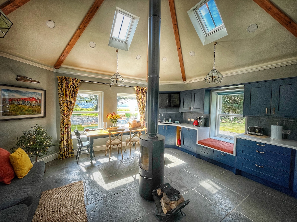 Opened in January 2020, the Gate Lodge is a charming octagon with plenty of original character. Warm and well-equipped, it has been completely renovated and sits within the grounds of a working conservation farm. Strictly No Smoking. Only a ten minute walk from Loch Bay Restaurant, the Stein Inn, Skyeskyns and Diver's Eye, the lodge is surrounded by nature and wildlife with stunning views. It offers the perfect, peaceful break. The Farm Tea Room is open Wed, Thur, Fri (see website)