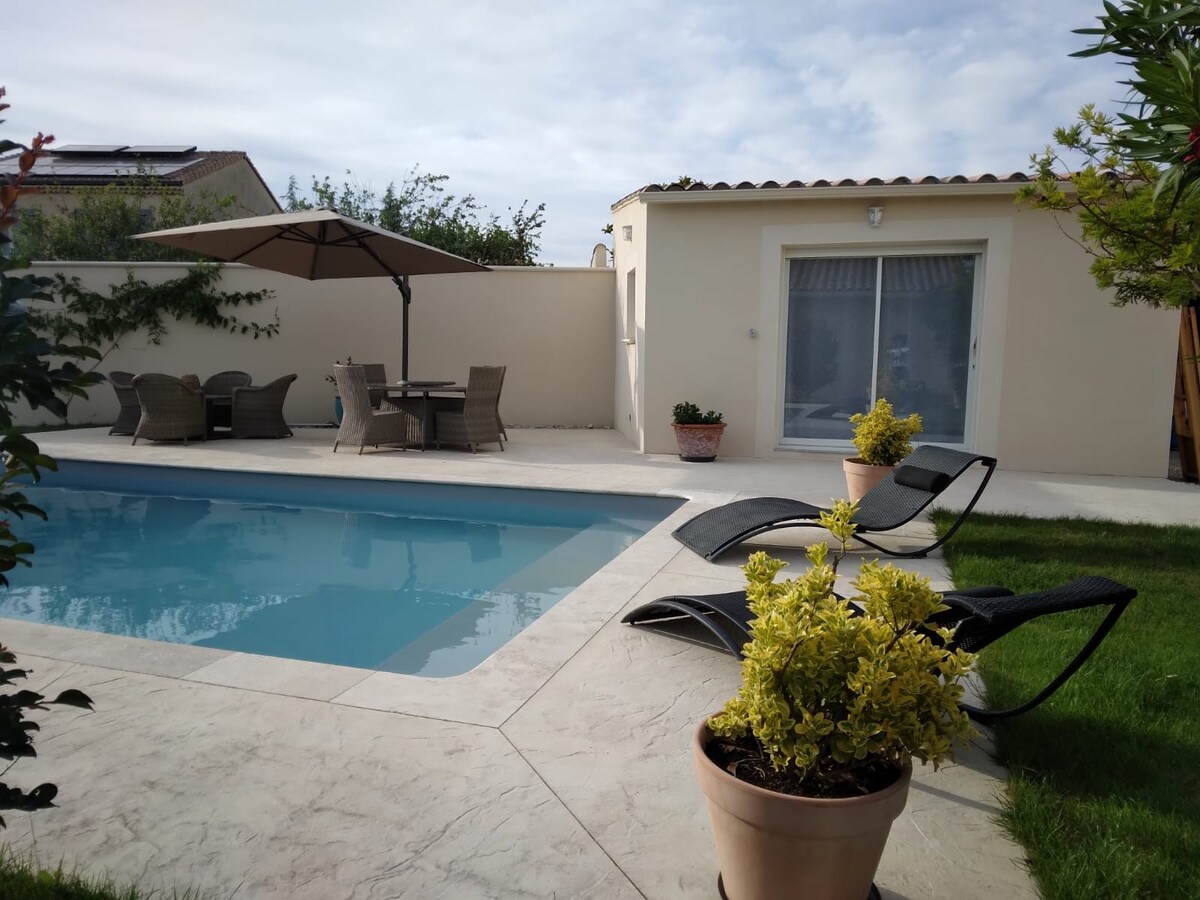 «La Maison aux Oliviers »- ը 90 մ2 մակերեսով փոքրիկ հմայիչ ագարակ է ՝ օդորակիչով, անկախ և գտնվում է հին ձիթապտղի պուրակի վրա, որը հանգիստ է կանաչապատ պարտեզում, որն առաջարկում է գեղեցիկ առանձին ջեռուցվող և պաշտպանված լողավազան ։ Դրա լայն հովանոցը հնարավորություն է տալիս ապրել արևից և քամուց (միստրալ): Պատմական կենտրոնին, տեղական շուկային և խանութներին մոտ (ոտքով), այն հիանալի կահավորված է հեռակառավարման վահանակի համար (գերարագ մանրաթել)