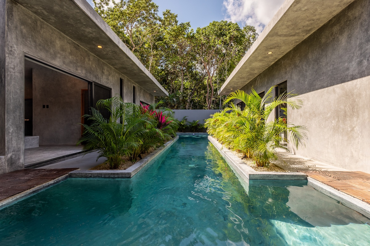 Բարի գալուստ Areia Tulum ։ Ձեր լողացող կոնդոմինիումը գտնվում է ջունգլիների, լողափի և քաղաքի միջև ։ Երկտեղանի մահճակալ, ամբողջական խոհանոց, օդորակիչ, Wi - Fi, լողավազան, տանիք, շուրջօրյա անվտանգություն ։ Հեքիաթային լողափերից 10 րոպե հեռավորության վրա ։ Թուլումի նոր օդանավակայան ՝ հեշտ հասանելիության համար ։ Ամեն ինչ կա խաղաղ, հարմարավետ և անմոռանալի հանգստի համար ։ Հիանալի է զույգի, փոքր ընտանիքի կամ ընկերների համար ։ Ամրագրեք ձեր արևադարձային հանգիստը հիմա: