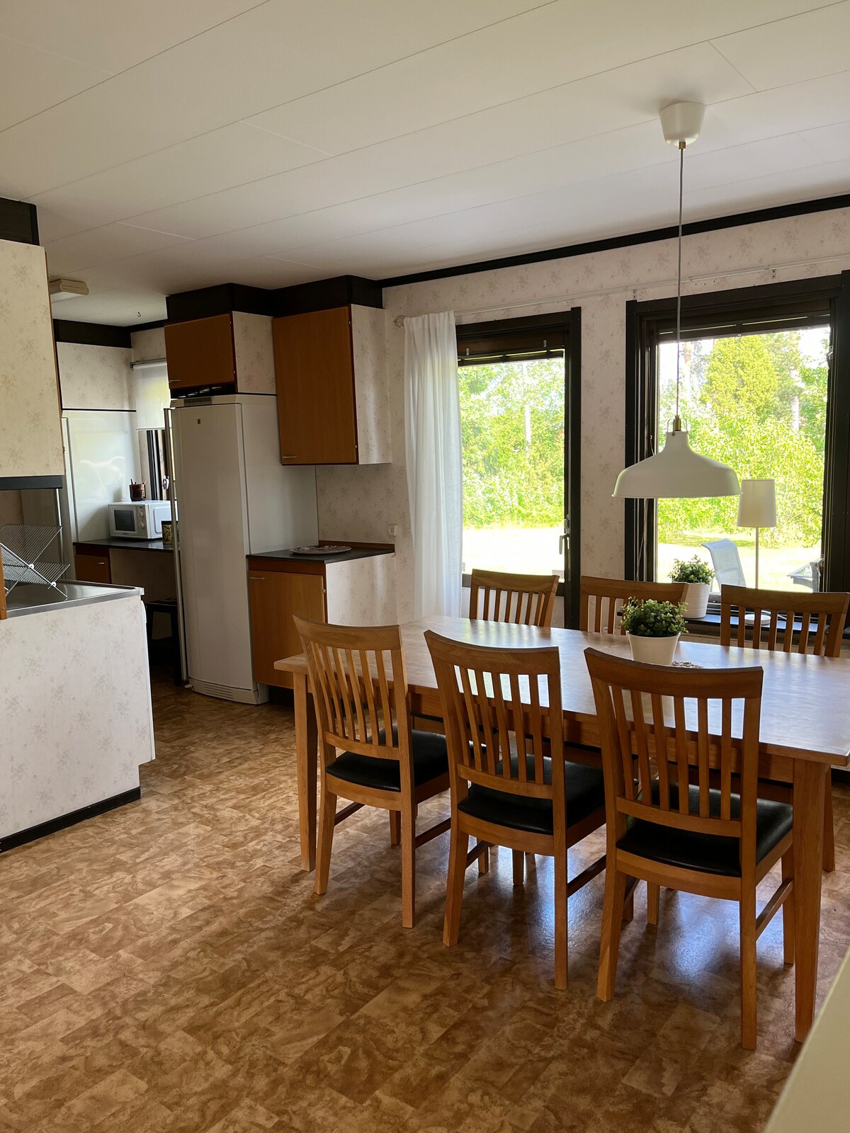 Քոթեջ ՝ լճի սեփականությամբ և սեփական լողափով ու նավամատույցով ։ 3 ննջասենյակ, 1 սենյակ ՝ երկտեղանոց մահճակալով, 2 սենյակ ՝ յուրաքանչյուրը երկհարկանի մահճակալով, ինչպես նաև հեռուստացույցի սենյակում 2 հոգու համար նախատեսված բազմոց - մահճակալ: Ցնցուղ և զուգարան ՝ սեփական ջրհորով և ջրատաքացուցիչով ։ Նկատի ունեցեք, որ լվացքի մեքենան բացակայում է ։ Հյուրերը պետք է ունենան սեփական անկողնային սպիտակեղեն և սրբիչներ ։ Ամբողջ տարին մուտք դեպի տաք լոգարան (39 աստիճան )՝ մաքրման շրջանառությամբ ։ Ներառված է թիավարող նավակ, բերեք ձեր սեփական բաճկոնները ։ Տնակն առանց ծխի է և առանց տնային կենդանիների ։ Ուշադրություն, այլ ոչ թե կուսակցական խմբերի համար: