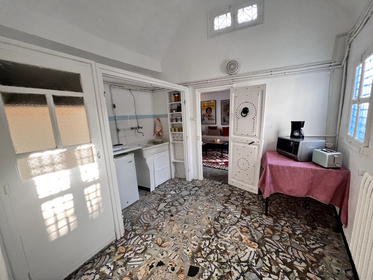 Completely independent of the house with 2 terraces areas lounge 5 seats, close to the sea (30 meters) close to from the city center and shops and supermarkets and public transport 200 meters, airport 16 km and near the village of sidi bou Said (2km) the 13th best village in the world (2017)and Carthage and his remains (4 km) 300 meters from the promenade and 2 large parks nearby greenery corners reading, skating and wax tennis.A 800 m to the trendy cafes and restaurants round boxes by night.