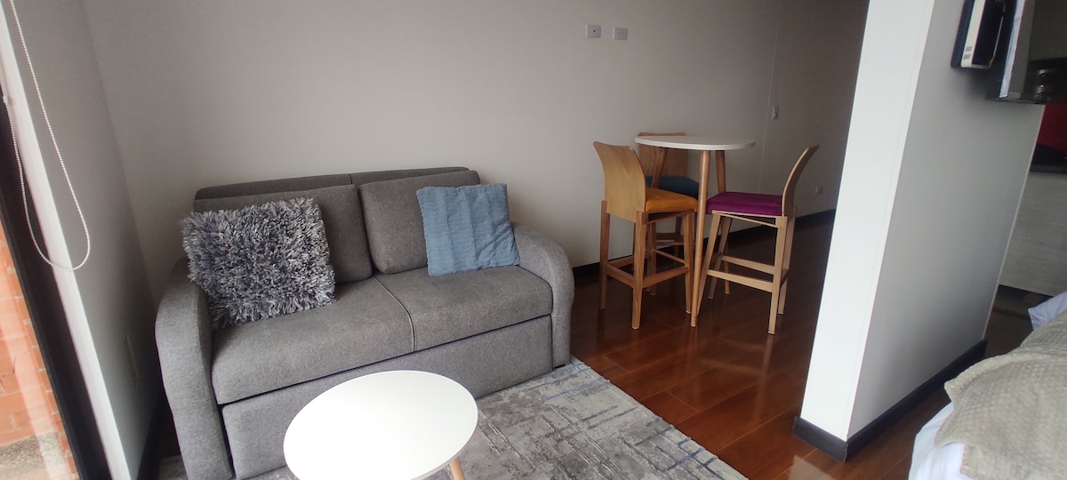 Անկախ ստուդիայի բնակարան Unicentro - ի դիմաց, բաղկացած է ճաշասենյակից, 1 ննջասենյակից, ամբողջական խոհանոցից, լվացքատան պատիոյից, 2 տեռասից և լիովին կահավորված է