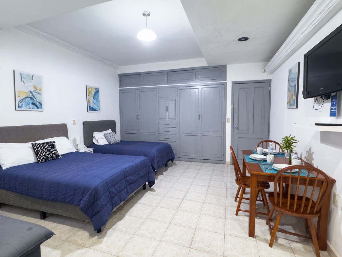 🏡✨ Ձեր իդեալական տարածքը Տուկտլա Գուտիերեսում: ✨🏡 Վայելեք հարմարավետ սենյակ անվտանգ տարածքում, անվտանգության և կենտրոնական տեսախցիկները, սուպերմարկետներին, տրանսպորտին և հիմնական պարագաներին մոտ: Արագ Wi - Fi 700 ՄԲ , հարմարավետ մահճակալով և հանգիստ միջավայրով ՝ այն կատարյալ է երկարատև այցերի համար ։ Ապրեք ընդհանուր հարմարավետությամբ և հեշտությամբ մուտք գործեք այն ամենը, ինչ ձեզ հարկավոր է ՝ BBVA Banks, Banamex, Walmart, Zona de Antros, Parque de la marimba, Parque bicentenario ։ Ամրագրեք հիմա և դարձրեք այս տարածքը ՝ ձեր ժամանակավոր տունը: