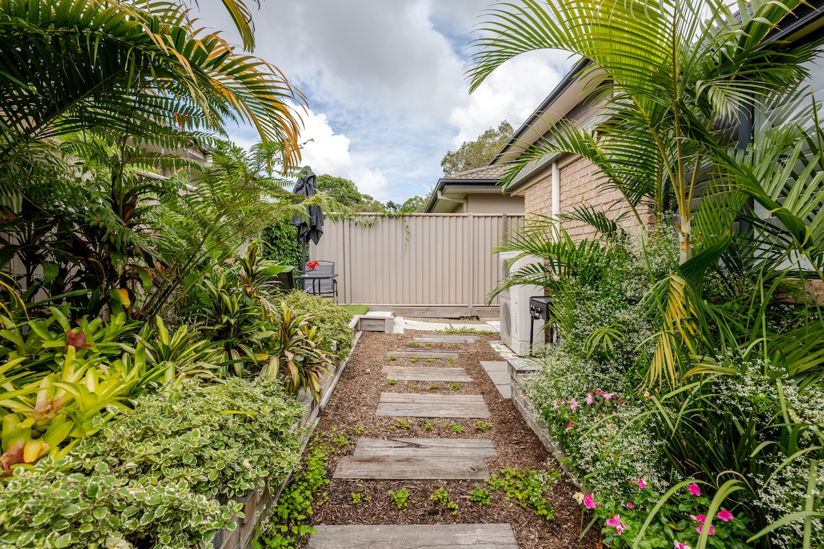 Sanitised and sparkling clean !!! This one bedroom unit with a comfortable queen size bed, one bathroom and separate sitting/lounge area is a central location and is quiet and private. The outside sitting area under the fragrant frangipani tree and garden is tranquil and relaxing for an afternoon drink. Crisp white linen is provided along with beach towels. The unit is airconditioned with TV, Netflix and free WIFI.