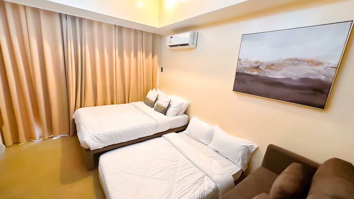 Your Suite 7 at Casiana Residences Tagaytay, one of our 11 units located in the same building. Unwind in this spacious 40 sqm suite with luxe interior and upscale furnishing. Tastefully decorated, cozy ambience, and complete with all the amenities you need for a convenient and relaxing stay. Enjoy affordable luxury experience with the shared hotel amenities such as heated swimming pool, state-of-the-art gym, kids play area, carousel, spa, restaurant and cafe, pool bar, and free parking!