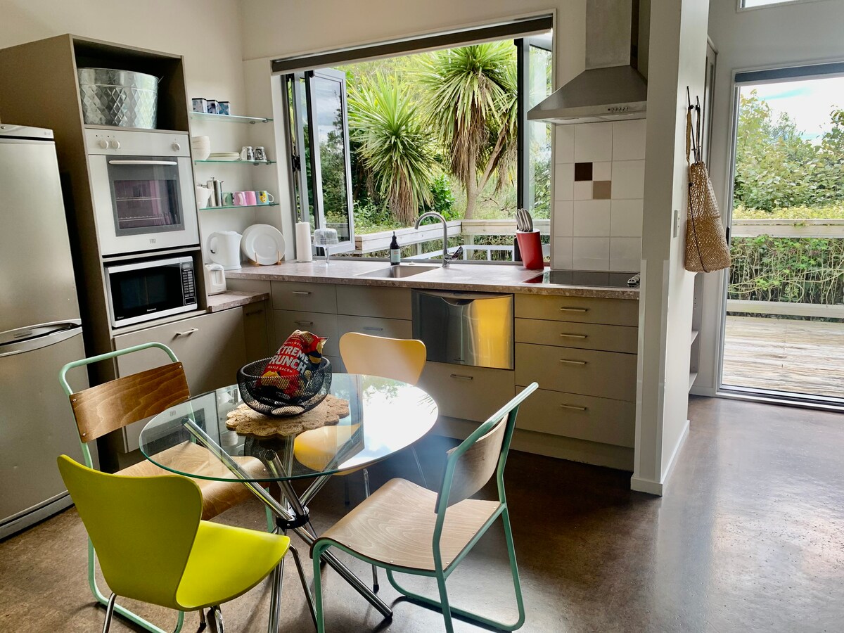 Total privacy, peace and quiet, Seafield Cottage was built with our guests in mind. Panoramic views of the valley looking out to the sea. Picturesque gardens to explore. Outdoor fireplace and spa pool to soak in under the stars. New Gym/Yoga studio for your private use. Complete with orchard to pick your own seasonal fruit. Designed for your total relaxation and a place to recharge and reconnect with your best friend or on your own. Farm eggs, bread, milk, butter. Bottle of wine. Full kitchen.