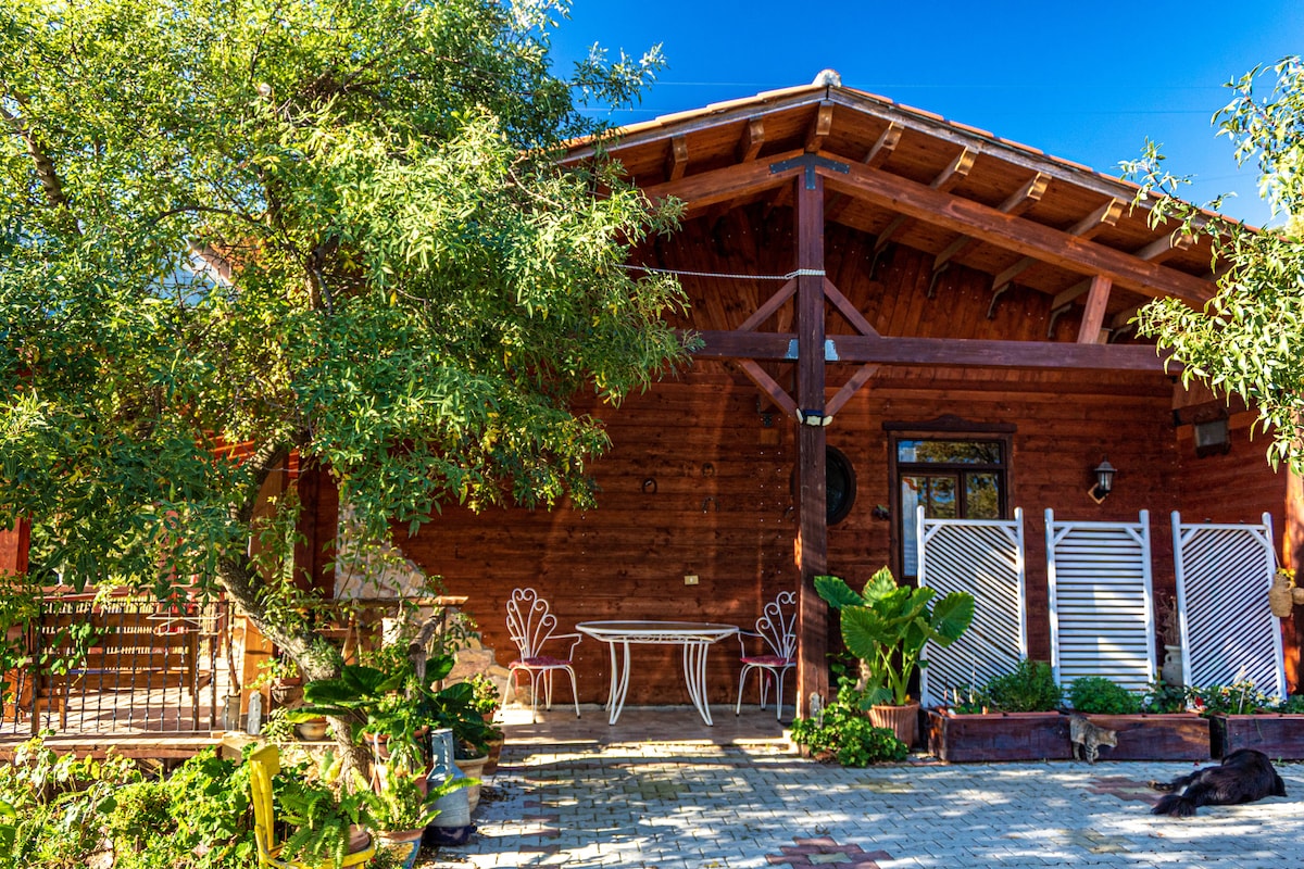 Ռոմանտիկ քարե տուն և բակ ցնցող լողափի մոտ