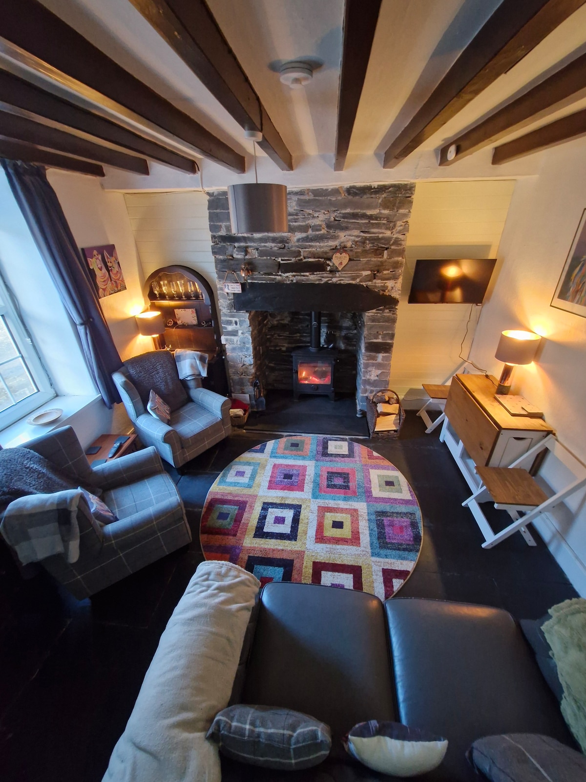 (10% DISCOUNT 7 DAYS+) A lovingly refurbished characterful and romantic one bedroom cottage with an edge of luxury in the heart of the Snowdonia National Park. Amazing views of the beautiful Cardigan Bay and the Lleyn Peninsula in close proximity to award winning beaches. Set in peaceful countryside, full of original features. Enjoy cosy evenings in front of the dual aspect wood stove or soaking in the extremely relaxing wood burning hot tub whilst taking in the views or gazing at the stars.