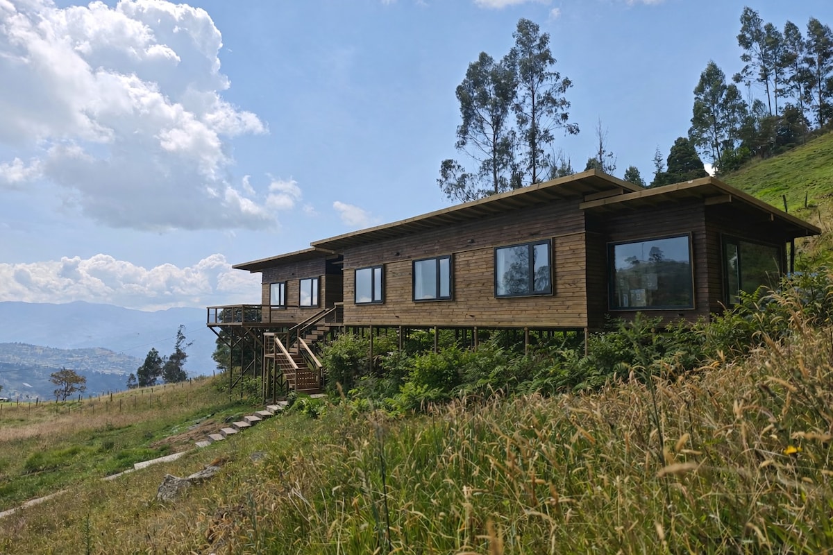 ENG/ESP/DEU/FRA - Beautiful cabin near to the Laguna de Guatavita. Enjoy a stay out in the nature and in the wonderful and mystical region of the Sacred Lagoon. The cabin has a queen size bed in the 2nd floor and the option for an air mattress in the 1st (max 4 people), a full kitchen, a bathroom with hot water. Also, a fire pit/BBQ, a trampoline for the kids, and a greenhouse with an organic garden in the premise. Beautiful hikes for all levels and other activities on request (paid separately)