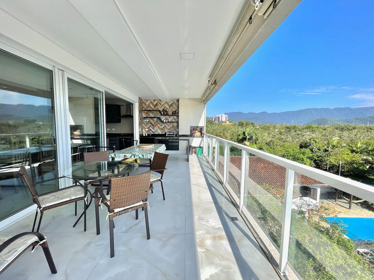 Բնակարան ԴՆԹ արգելոցում ՝ Ուբատուբայում, որը գտնվում է մեծ լողափի դիմաց ։ Պատշգամբ, որից տեսարան է բացվում դեպի ծով ։ Ունի երկու առանձնաբաժին ՝ օդորակիչով և սմարթ հեռուստացույցով: Օդորակման համակարգ և 50 դյույմանոց Smart TV հյուրասենյակում ։ Սեփական ինտերնետ 100 ՄԲ: Մենք առաջարկում ենք նաև հյուպատոս գարեջրատուն և Eletrolux ջրի զտիչ: Գերհարմարավետ և ամբողջական խորոված ՝ Ուբատուբայում ձեր ընտանիքի հետ լավագույն այցի համար ։ Ընդհանուր տարածքն ունի ջեռուցվող լողավազան, գոլորշու և չոր շոգեբաղնիք, տպավորիչ ջակուզի և կինոթատրոն: