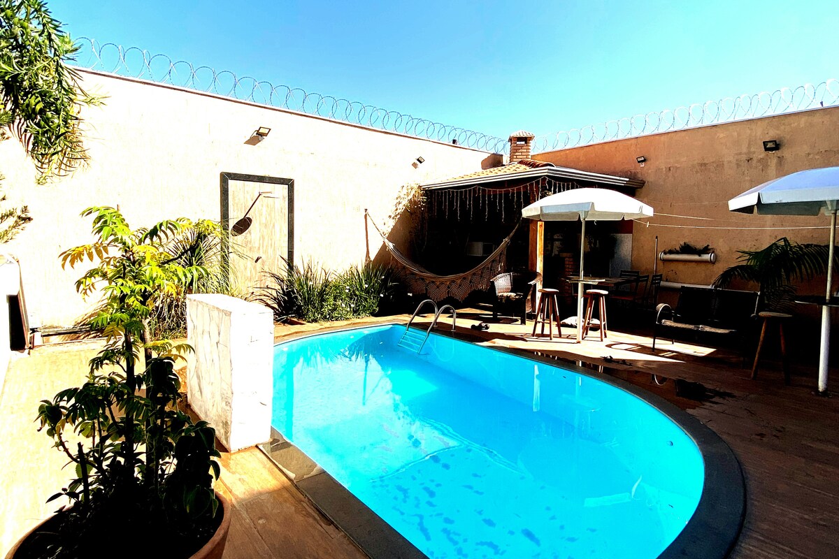 Ֆունկցիոնալ և իդեալական առանձնաբաժին ձեր այցի համար ։ Ընդունելություն, UFU-ի մոտ, Սանտա Մոնիկայի համալսարանում: Տարածքն առաջարկում է 1 հարմարավետ սենյակ ՝ 3 մեկտեղանի մահճակալով, 1 լոգասենյակով, մինիբարով, օդորակիչով և կաբելային հեռուստատեսությամբ ։ Խոհանոց/սրճարան (համօգտագործվող տարածք), հագեցած հիմնական պարագաներով ՝ նախուտեստներ կամ հասարակ կերակուրներ պատրաստելու համար (մենք նախաճաշ ՉԵՆՔ առաջարկում): Օգտվեք նաև մասնավոր ԿԱՅԱՆԱՏԵՂԻԻՑ և արտոնյալ վայրից ։ Կատարյալ է գործնական այցի համար ՝ ծախսերի մեծ օգուտով ։