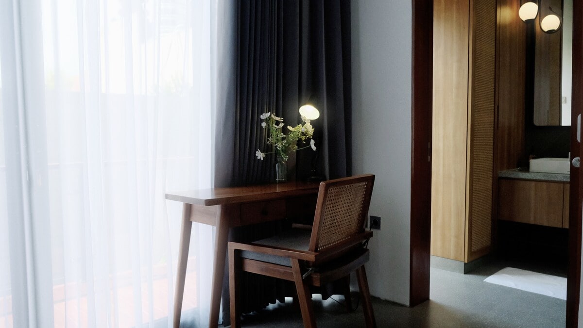 Ընդարձակ սենյակն առաջարկում է բալիական բնական գեղեցկություն