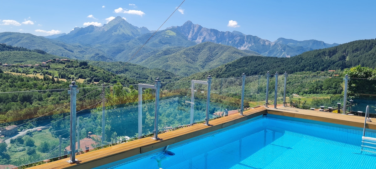 The property is located on top of a very panoramic hill, near the medieval village of Sillico where is located also a very good restaurant. Perfect accommodation for romantic couples, families with children with their dogs. Perfect place to relax but also suitable for guests who like active holiday with many exiting trekking, canyoning, mtb and horse riding excursions. Nice panoramic pool and view on the entire valley. Welcome where Tuscany meets the sky!