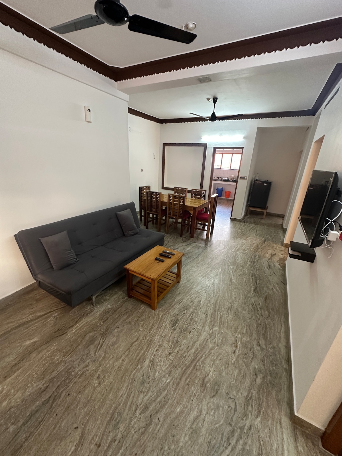 Բարի գալուստ ձեր մասնավոր 2BHK տուն Տրվանդրումում: Այս բնակարանը նախատեսված է հարմարավետության համար. կատարյալ է և ՛ գործնական, և ՛ հանգստի ուղևորների համար ՝ օդորակիչով ննջասենյակներով ։ Վայելեք նորաոճ ինտերիերը և բոլոր հիմնական պարագաները ՝ գերարագ Wi - Fi, հեռուստացույց, ողջամտորեն լավ կահավորված խոհանոց ՝ միկրոալիքային վառարանով և սառնարանով, լվացքի մեքենայով, արդուկով և թարմ սպիտակեղենով ու սրբիչներով ։ Այն, ինչ տեսնում եք լուսանկարներում, հենց այն է, ինչ ստանում եք. ոչ մի անակնկալ, պարզապես մաքուր և հարմարավետ տարածք, որն իրեն զգում է ինչպես տանը: Հիանալի հասանելիություն բոլոր ուղղություններին ։