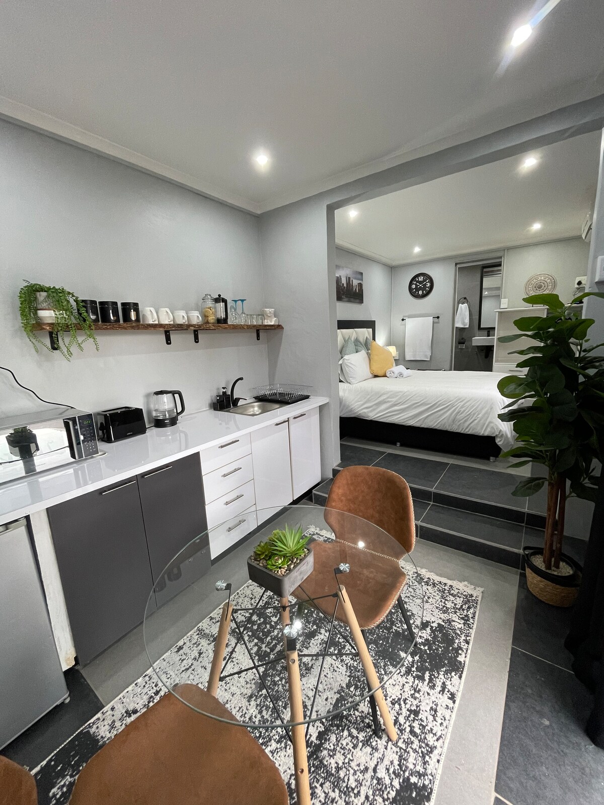 Այս ինքնասպասարկվող քոթեջն ընդարձակ է, (66 ք/մ) խաղաղ և հմայիչ: Տեղակայված է Գլենվուդի հանգիստ, կանաչ արվարձանում ՝ սուրճի խանութներով, յոգայի/պիլատեսի հարմարություններով, որոնք մոտ են հարմարություններին և խանութներին ։ Այն հեռու չէ լողափից և մեծ առևտրի կենտրոններից ։ Քոթեջն ունի 150 -179 սմ մահճակալ, օդորակիչ, կից ցնցուղ և հանգույց, մոնտաժված խոհանոց, dstv (բոլոր ալիքները), Wi - Fi և փողոցային անվտանգ կայանատեղի: Նկատի ունեցեք, որ ՄԵԿՇԱԲԱԹՅԱ և ՄԵԿԱՄՍՅԱ ամրագրումների ՀԱՄԱՐ ԳՈՐԾՈՒՄ ԵՆ ԶԵՂՉԵՐ ։