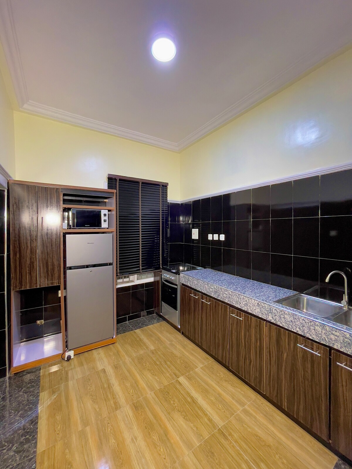 Enjoy a luxurious, spacious, and affordable retreat in this stunning block of studio and 2-bedroom apartments. Located in a quiet and safe neighbourhood, these apartments are ideal for solo travellers or groups who want to enjoy the convenience and comfort of a home away from home. Each apartment features a king-sized bed, a sofa, a kitchenette, a bathroom and fully equipped with modern amenities including cable TV, air conditioning and an uninterrupted supply of electricity.