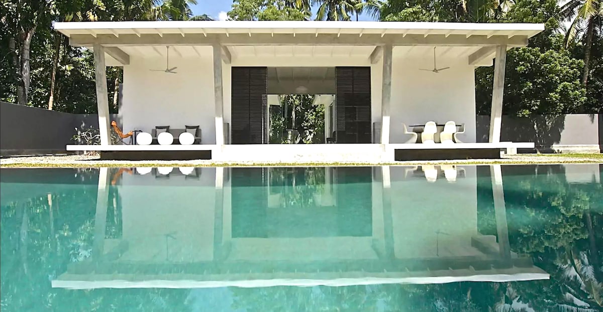 This uniquely designed villa offers complete privacy and comfort, featuring two identical bedrooms—each with its own en-suite bathroom—a spacious terrace with a dining area, a fully equipped kitchen, and a private pool completely hidden from outside view. Nestled in the tropical heart of Madiha, Sri Lanka, this peaceful and picturesque retreat is surrounded by lush greenery, offering a luxurious and serene escape for families, friends, or couples seeking modern amenities in total seclusion.